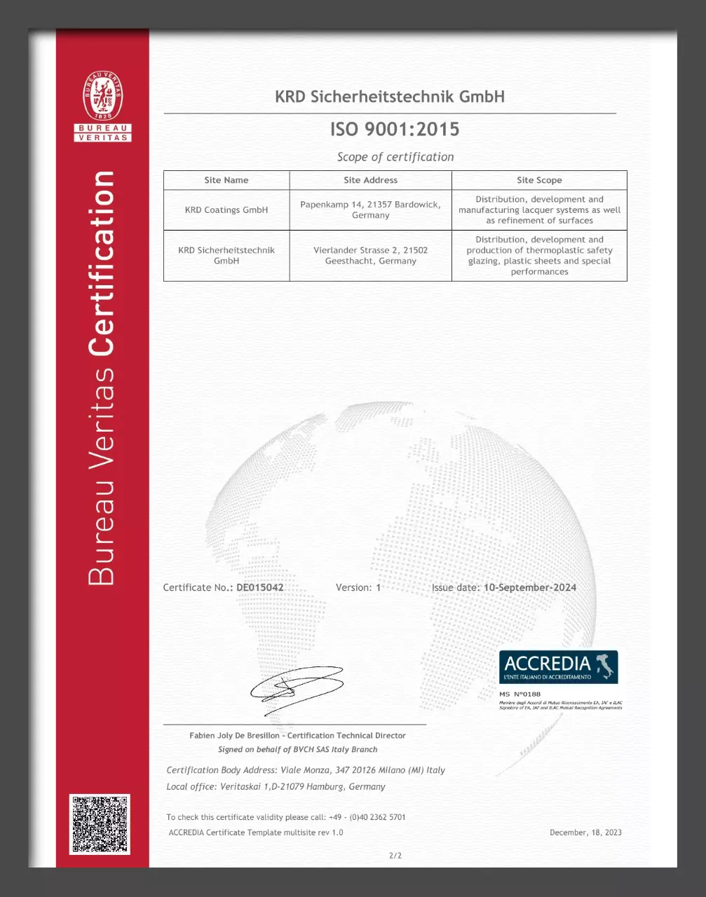 Certyfikat zarządzania jakością zgodnie z DIN EN ISO 9001:2015 dla techniki bezpieczeństwa